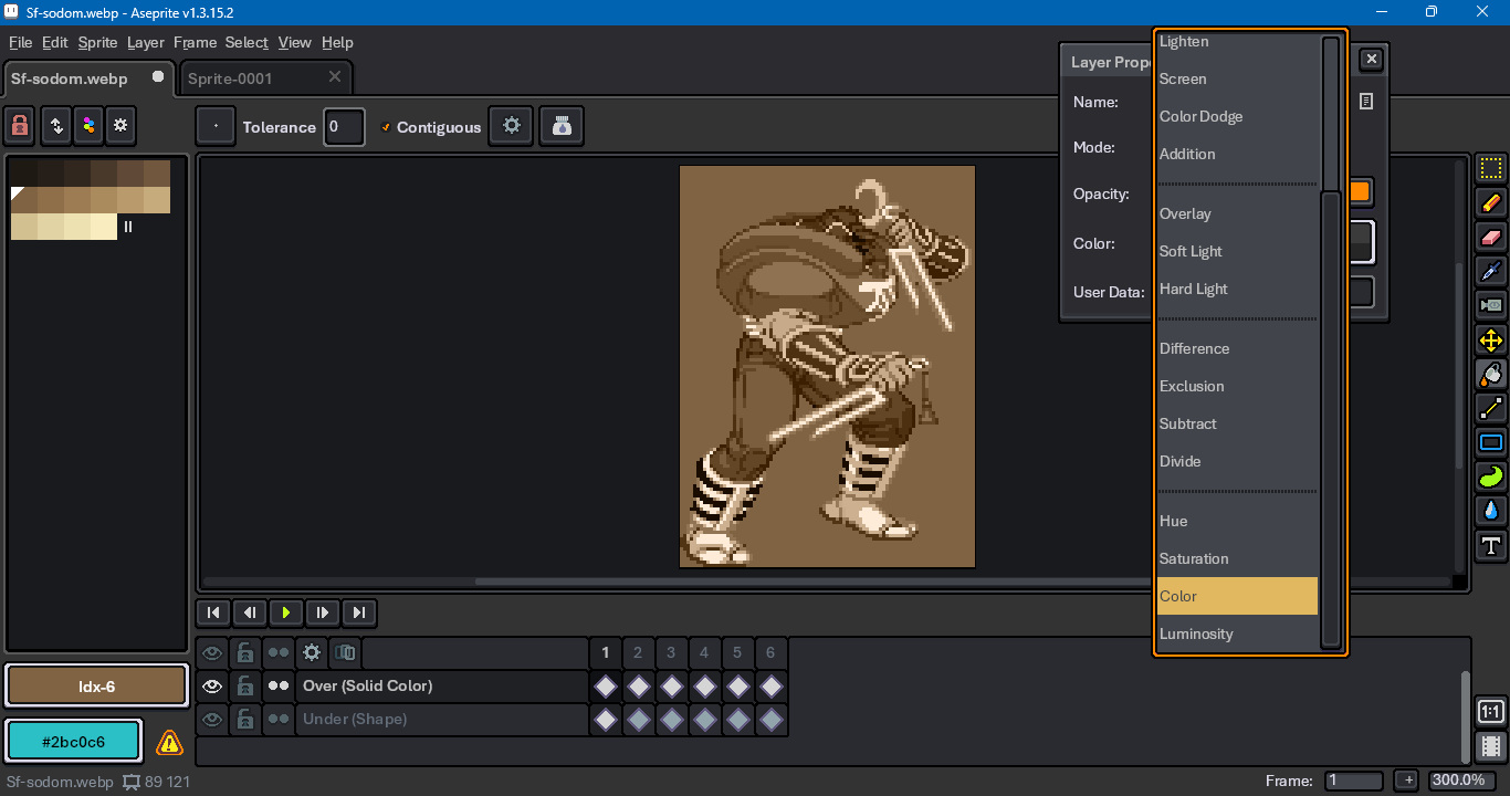In layer properties, change the top layer’s blend mode to Color.