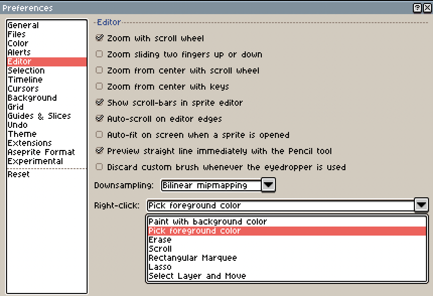 i want to change the action my right mouse button is associated with. right now, it draws with a secondary colour, but i would like for it to work as a quick eyedropper tool.