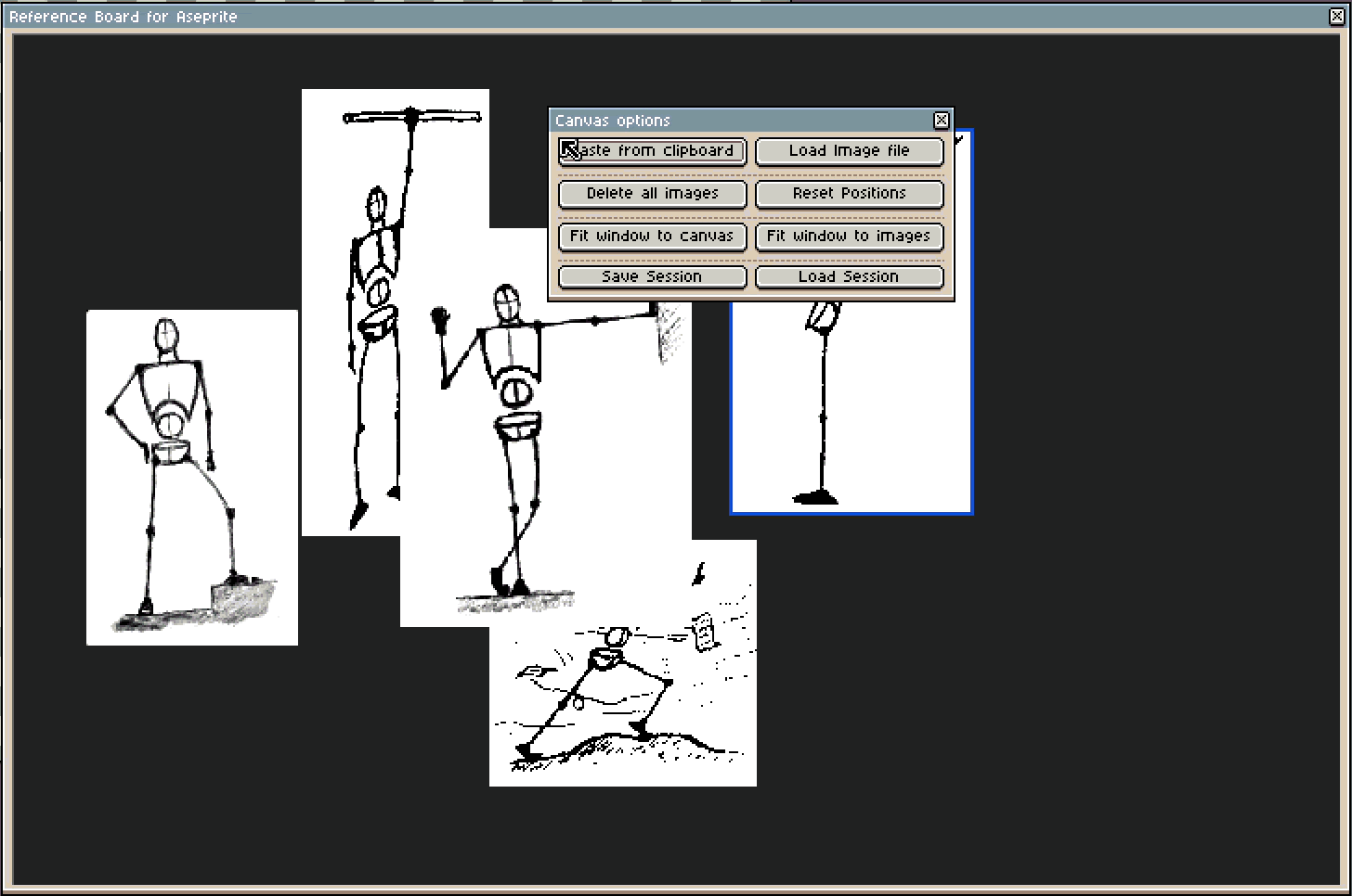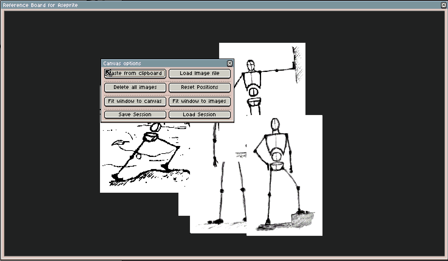 The extension adds a floating window where you can collect and organize all your reference images while you work on your sprite, animate or change tools. It is designed as an external reference space, always accessible and fully integrated into your creative process. Since it’s a floating window inside Aseprite, you can also keep it on a secondary monitor.