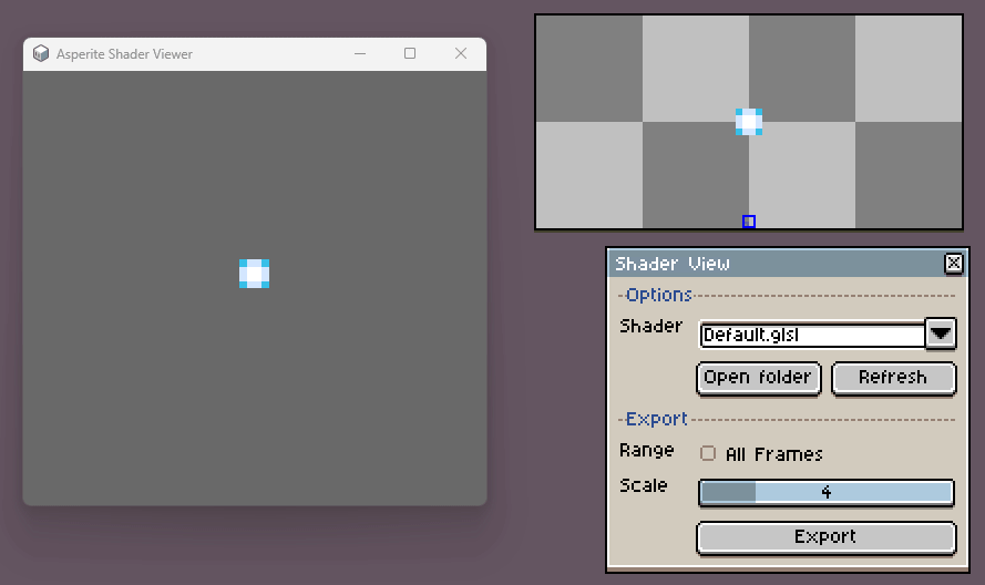 Since shader compiling happens directly within the external view it is possible to edit and reload them without closing Aseprite even once.
