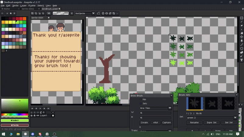 I’ve been working on a extension called Grow Brush that supercharges your custom brush workflow in Aseprite.