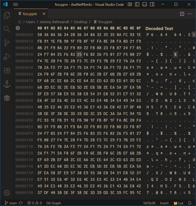 Viewed in a hex editor, the binary version looks like this: