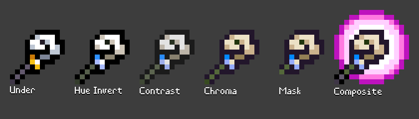 In the example picture you posted, the black in the staff’s outline turns into a lavender, #8090d8. It turns into the same lavender for many different colors in the glowing sphere layer, one of which is white.