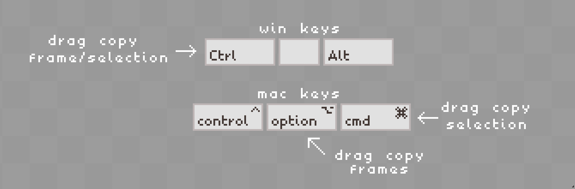 Hello everyone, I have a question. I use both Mac and Windows versions of Aseprite and while switching I find it awkward that the copy frame/selection function is being separated for two different keys.