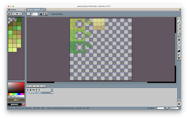 - Load your beautiful tile art into Aseprite