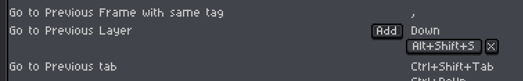 Hi @pandan64, I’ve just tested on Linux and I was able to assign the Alt+Shift+S to Go to Previous Layer. But I’ve tested on Windows (and with old versions like v.1.3.14.4) and it looks like a Windows problem (it doesn’t look like a new issue from the latest update). The S key is not reported when Alt+Shift is pressed.