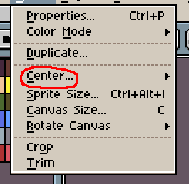Hello! I bought aseprite on steam one day ago and im starting to explore aseprite and explore its features. But i now just found out theres no center image option. So i wanted to make a suggestion that adds that feature.